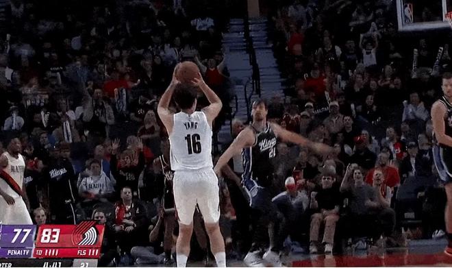 开拓者球迷:开拓者过去12分里有10分是杨瀚森一人拿的。