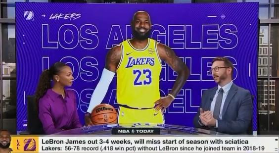 湖人球星詹姆斯因坐骨神经痛缺阵3至4周,将首次无缘NBA常规赛揭幕战